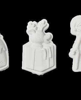 Zestaw gipsowych ozdób świątecznych do malowania (różne rodzaje) w zestawie: > 8 pojemniczków z farbą po 3 ml > 1 pędzelek do malowania > wstążka