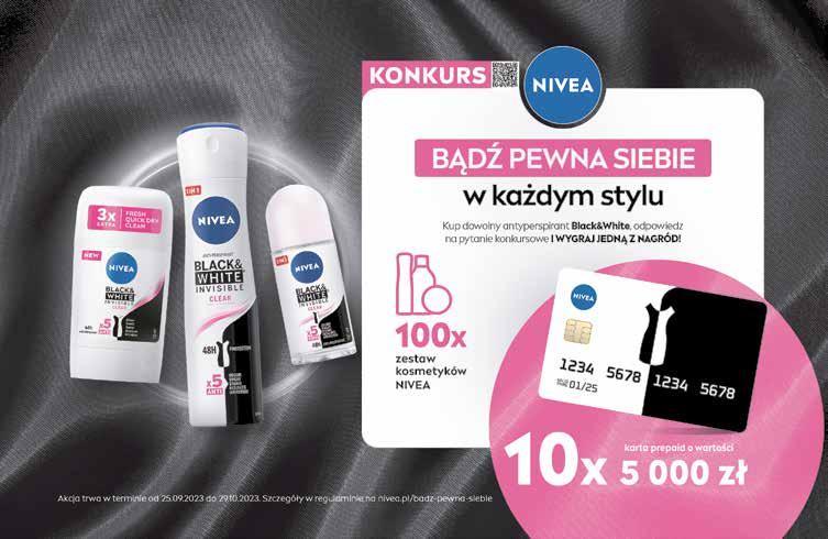 Żel pod prysznic Orange Nivea 750 ml 19,99/1 l 949 20% TANIEJ 11 99 Żel pod prysznic Sensitive 3 w 1 Nivea Men 250 ml 37,96/1 l Najniższa cena z 30 dni przed wprowadzeniem obniżki: 11,99 Antyperspirant roll-on Nivea (różne rodzaje) 2 × 50 ml 239,90/1 l 23 99 SUPERCENA 14 99 SUPERCENA Od poniedziałku 25.09 do soboty 30.09.2023 22 22