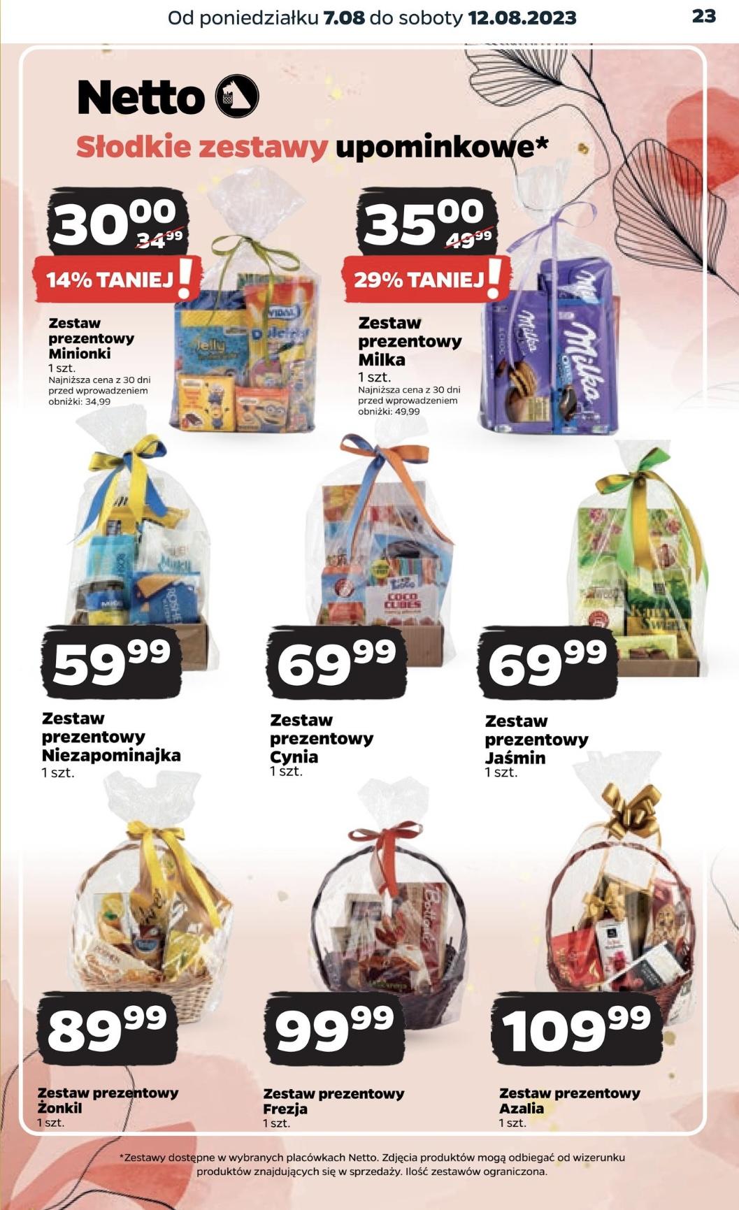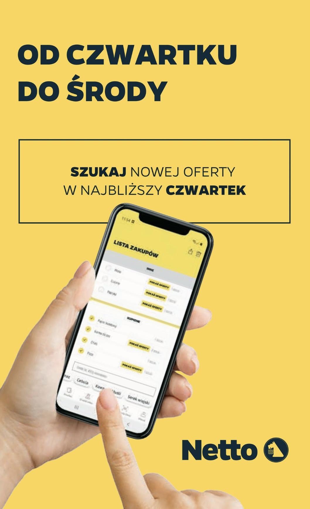 Oferta handlowa na tydzień 32/23. Ważna od 7.08.2023 do 12.08.2023 r. włącznie lub do wyczerpania zapasów. Znaki firmowe i towarowe należą do ich właścicieli. Sprzedaż produktów tylko w ilościach detalicznych. Wszystkie ceny w PLN zawierają podatek VAT. Zapraszamy do Netto! *Uprzejmie informujemy, że oferta w sklepie przy ul. Śląskiej 26/u1 w Szczecinie, ul. Sępoleńskiej 24b w Chojnicach, ul. Dobrego Pasterza 67 w Krakowie, ul. Partyzantów 22 w Jędrzejowie, ul. Królewieckiej 41/43 we Włocławku, ul. Wspólnej 6 w Łabiszynie, ul. Zbąszyńskiej 18c w Nowym Tomyślu, ul. Chramcówki 30 w Zakopanem, ul. Kleszczowej 18 w Warszawie, ul. Zagórskiej 1a w Suchedniowie, ul. Budowlanych 14 w Głogowie, ul. Długiej 44/46 w Zgierzu, ul. Stężyckiej 32/40 w Dęblinie, ul. Księcia Józefa Poniatowskiego 9 w Przemyślu, ul. Młynarskiej 1 w Raszynie, ul. Wojska Polskiego 6 w Aleksandrowie Kujawskim, ul. Gdańskiej 81 w Łodzi, ul. Dworcowej 24a w Łaziskach Górnych, ul. Targowej 1 w Strykowie, ul. Sienkiewicza 2a w Czarnej Białostockiej, ul. Wrocławskiej 2a w Kamieńcu Wrocławskim, ul. Opolskiej 3 w Gdańsku, ul. Konstytucji 3 Maja 7 w Mińsku Mazowieckim, ul. Zawadzkiego 12 w Dzierzgoniu, ul. Lutosławskiego 2 w Darłowie, ul. Kościuszki 37 w Rogoźnie, ul. Lipowej 52 w Sokołowie Podlaskim, ul. 11 Listopada 5a w Łodzi, pl. Wolności 1 we Włoszczowie, ul. Sprzymierzeńców 20 w Ustce i ul. Lipowej 6a w Myśliborzu różni się od oferty prezentowanej w gazetce reklamowej. O dostępność produktów prosimy pytać sprzedawców.
