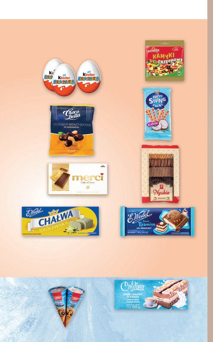 4 99 Czekolada Merci Storck (różne rodzaje) 100 g 49,90/1 kg 10 99 Ciastka Mieszanka Familijna Cukry Nyskie 710 g 15,48/1 kg 6 99 16% TANIEJ 8 39 Deser lodowy Coldino > o smaku cappuccino-waniliowym > o smaku czekoladowo-truskawkowo-waniliowym 1 l PRODUKT MROŻONY PRODUKT MROŻONY CENA ZA 1 SZT. PRZY ZAKUPIE 2 SZT. 1 49 16% TANIEJ* 1 79 Rożek Coldino (różne rodzaje) 120 ml * w odniesieniu do ceny regularnej Przy zakupie 2 szt. 1,49/1 szt. (12,42/1 l) 2 99 Choco Bella > orzeszki arachidowe w czekoladzie > rodzynka w czekoladzie 100 g 29,90/1 kg Niespodzianka Kinder Cena regularna: 5,45 za 1 szt. 20 g 272,50/1 kg GRATIS 2+1 Rurki nadziewane Happy Swing Flis > kokos > wanilia > słony karmel 150 g 19,93/1 kg 2 99 2 29 30% TANIEJ 3 29 Kamyki orzechowe Jutrzenka 100 g 22,90/1 kg Najniższa cena z 30 dni przed wprowadzeniem obniżki: 3,29 Czekolada mleczna nadziewana E. Wedel > o smaku tiramisu 293 g; 40,92/1 kg > WW 245 g; 48,94/1 kg Najniższa cena z 30 dni przed wprowadzeniem obniżki: 14,99 11 99 20% TANIEJ 14 99 Chałwa Królewska o smaku waniliowym E. Wedel 250 g 39,96/1 kg Najniższa cena z 30 dni przed wprowadzeniem obniżki: 11,99 999 16% TANIEJ 11 99 SŁODYCZE LODY PRODUKT DOSTĘPNY W WYBRANYCH SKLEPACH Od poniedziałku 8.04 do soboty 13.04.2024 14 16