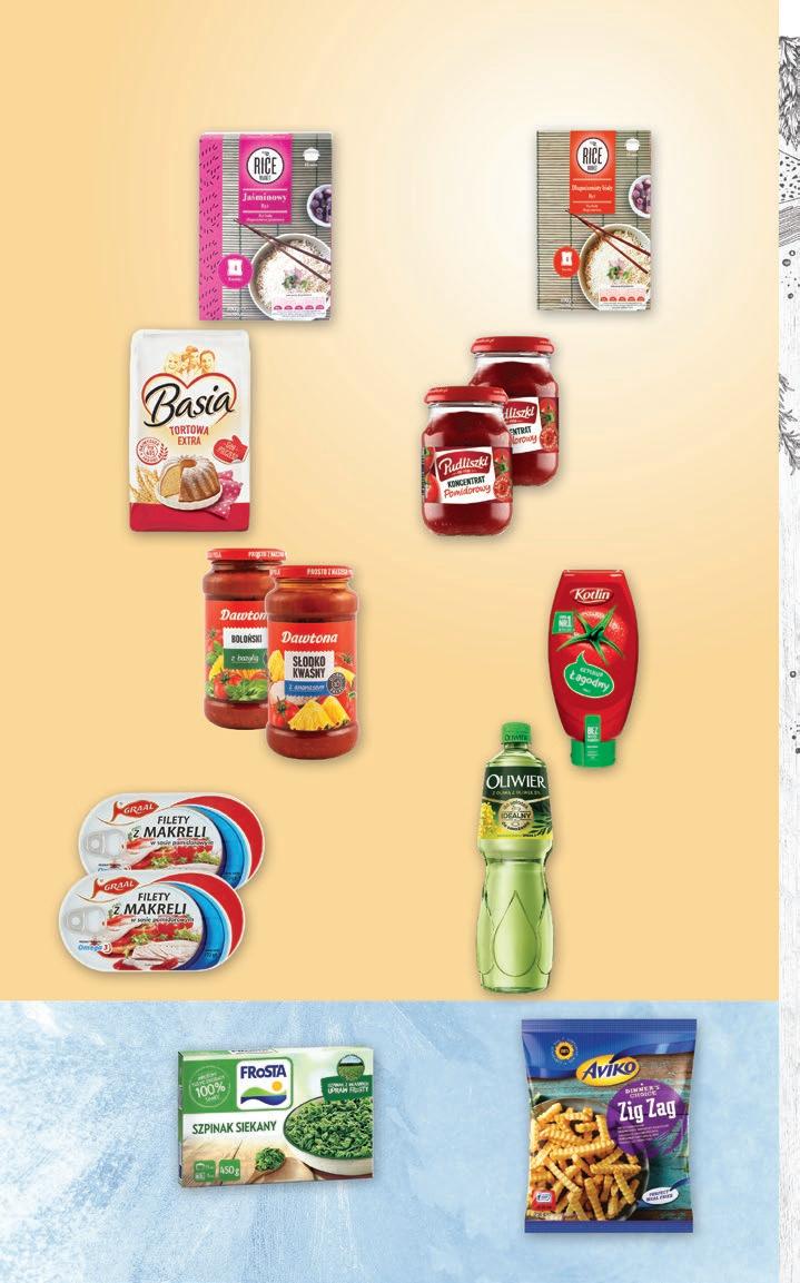 3 49 16% TANIEJ 419 Mąka pszenna tortowa extra Basia 1 kg Najniższa cena z 30 dni przed wprowadzeniem obniżki: 4,19 999 16% TANIEJ 11 99 Olej rzepakowy z oliwą z oliwek Oliwier 1 l Najniższa cena z 30 dni przed wprowadzeniem obniżki: 11,99 PRODUKT MROŻONY długoziarnisty Rice Market 4 × 100 g 8,23/1 kg 3 29 Ryż jaśminowy długoziarnisty Rice Market 4 × 100 g 7,23/1 kg 2 89 7 99 13% TANIEJ 919 Frytki Zig Zag Aviko 750 g 10,65/1 kg PRODUKT MROŻONY > siekany 450 g 9,31/1 kg > liście 300 g 13,97/1 kg Frosta 419 Ketchup Kotlin > pikantny 450 g; 500 g 13,31/1 kg; 11,98/1 kg 5 99 CENA ZA 1 SZT. PRZY ZAKUPIE 2 SZT. 4 49 11% TANIEJ* 509 Koncentrat pomidorowy Pudliszki 190 g * w odniesieniu do ceny regularnej Przy zakupie 2 szt. 4,49/1 szt. (23,63/1 kg) Najniższa cena z 30 dni przed wprowadzeniem obniżki: 5,09 CENA ZA 1 SZT. PRZY ZAKUPIE 2 SZT. 5 49 19% TANIEJ* 6 79 Sos Dawtona (różne rodzaje) 520 g * w odniesieniu do ceny regularnej Przy zakupie 2 szt. 5,49/1 szt. (10,56/1 kg) Najniższa cena z 30 dni przed wprowadzeniem obniżki: 6,79 CENA ZA 1 SZT. PRZY ZAKUPIE 2 SZT. 6 29 10% TANIEJ* 7 05 Filety z makreli Graal (różne rodzaje) 170 g * w odniesieniu do ceny regularnej Przy zakupie 2 szt. 6,29/1 szt. (37,00/1 kg) Najniższa cena z 30 dni przed wprowadzeniem obniżki: 7,05 DO SPIŻARNI Od poniedziałku 8.04 do soboty 13.04.2024 12 14