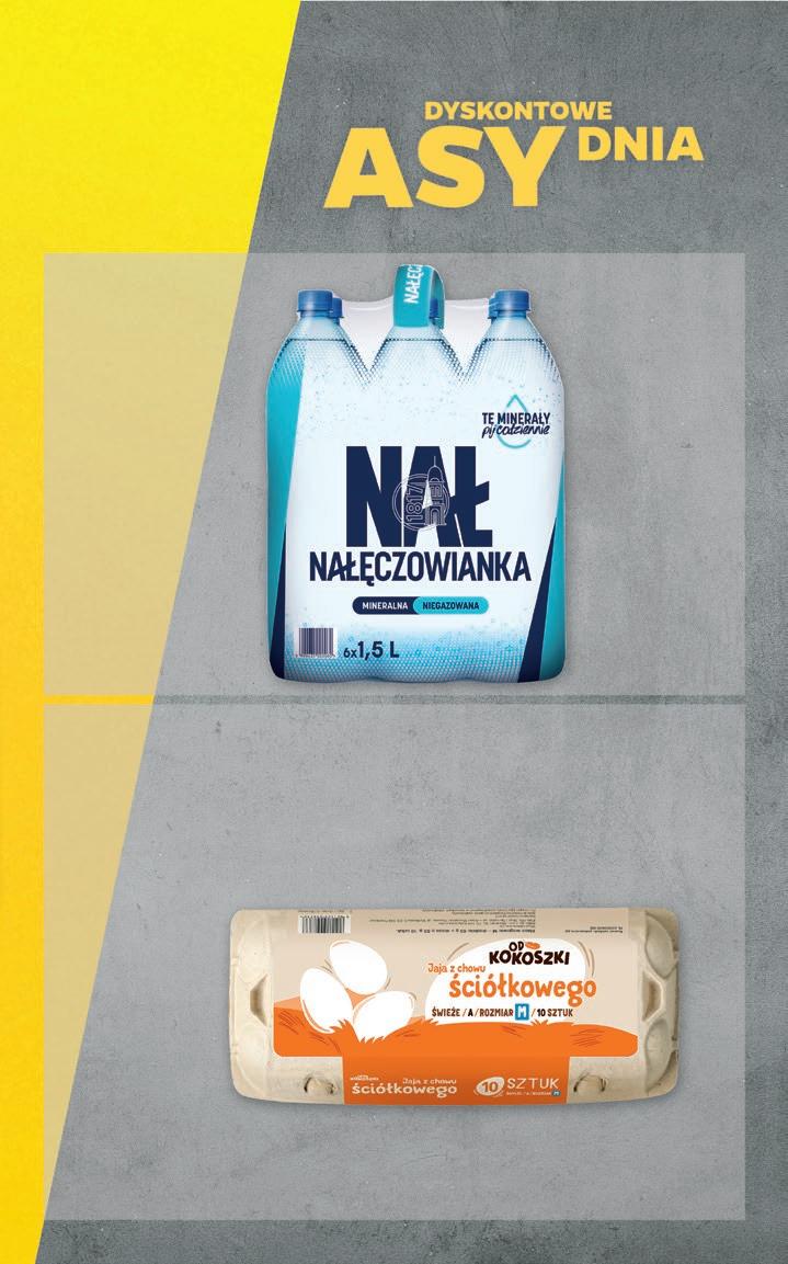 WTOREK 9.04 ŚRODA 10.04 CENA ZA 1 SZT. PRZY ZAKUPIE 6-PAKA 1 79 30% TANIEJ* 2 59 Woda mineralna Nałęczowianka > niegazowana > gazowana > delikatnie gazowana 1,5 l * w odniesieniu do ceny regularnej Przy zakupie 6-paka 1,79/1 szt. (1,19/1 l) Najniższa cena z 30 dni przed wprowadzeniem obniżki: 2,59 5 99 SUPERCENA Jaja z chowu ściółkowego Od Kokoszki rozm. M 10 szt., 1 opak. 0,60/1 szt. 5 5