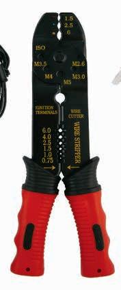 > zestaw zawiera 2 izolowane styki do złączy, zaciskarkę do kabli, szczypce do przewodów świec zapłonowych, zaciski do przewodów i gwintów, narzędzie do zdejmowania izolacji kabla, szczypce do cięcia drutu i gwintownicę 1 kpl.