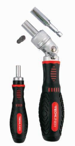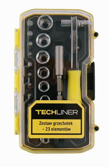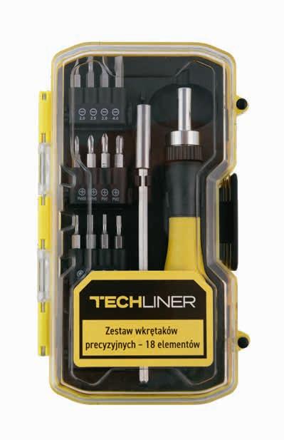 w zestawie wkrętak z grzchotką przestawną, wkrętak precyzyjny z grzechotką, łącznik oraz uchwyt do bitów
