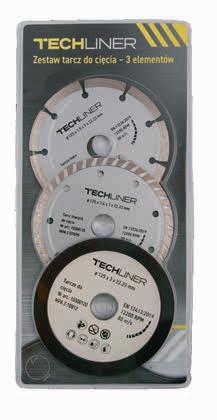 zestaw zawiera: tarczę diamentową segmentową o średnicy 125 mm, tarczę diamentową turbo o średnicy 125 mm, tarczę do cięcia o średnicy 125 mm