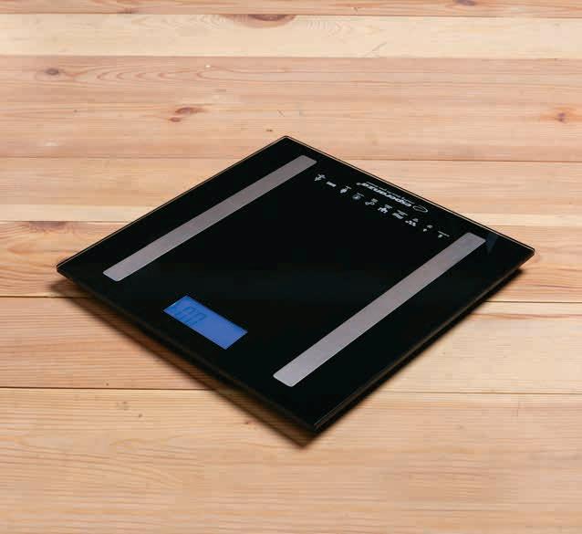 przeznaczona do analizy masy ciała, tkanki tłuszczowej, wody, mięśni, masy kostnej, BMI i określenia optymalnego zużycia kalorii [kcal]