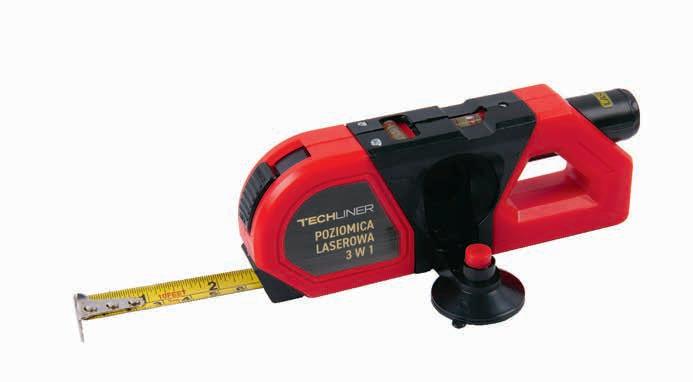 Poziomica laserowa 3 w 1 > zasięg lasera do 15 m > wyposażona w miarkę linową 3 m > libelle poziome i pionowe