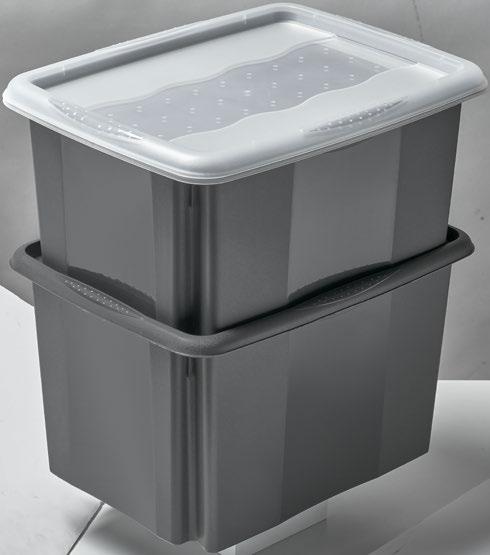 1 Skrzynka obrotowa Emil bez pokrywki poj. 30 l, kolor grafitowy Dzięki unikalnemu systemowy skrzynki bez pokrywki można ustawić jedna na drugiej lub wkładać jedna do drugiej po obróceniu o 180°. Dostępna również poj. 45 l. nr OBI 7234248