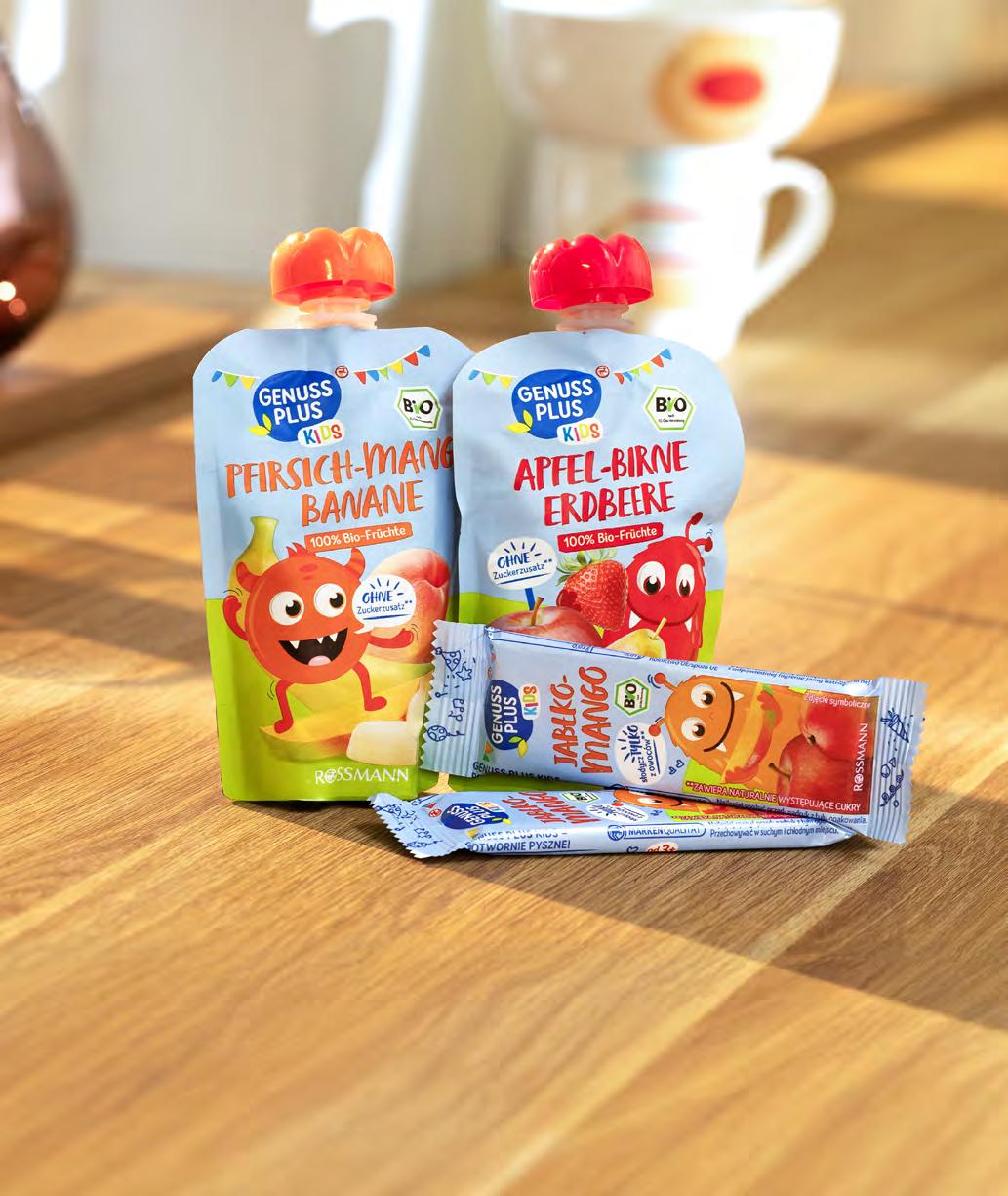 Genuss Plus Kids, owocowy mus z brzoskwini, mango i banana, 100 g