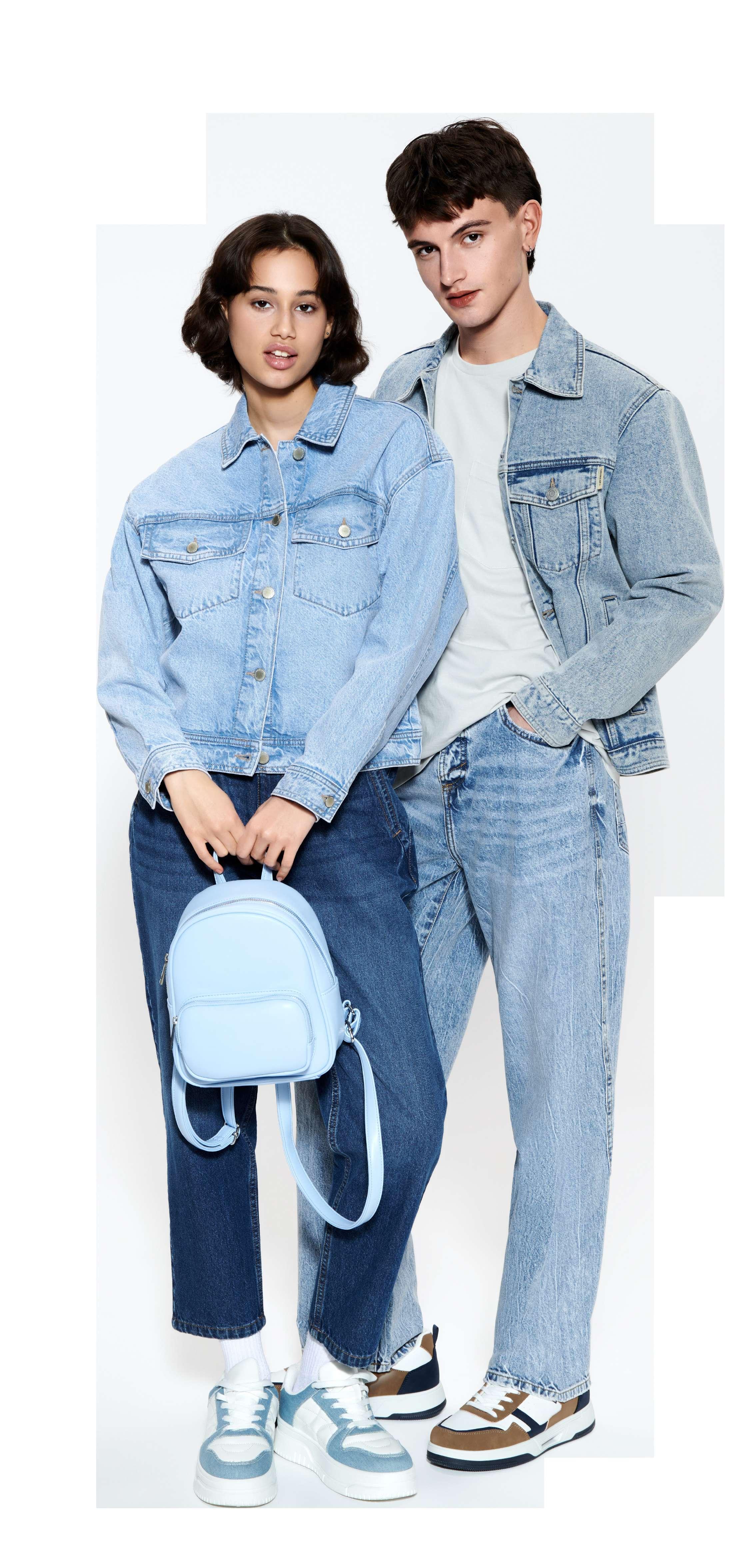W roli głównej: jeans! Denimowy total look dla niej i dla niego. JEANSY WIDE LEG 100% BAWEŁNY Z KIESZENIAMI CARGO ROMIARY: 32 - 44 7999 PLN TOREBKA BAGIETKA ZAPINANA NA SUWAK WYMIARY: 23 CM X 6,5 CM X 13,5 CM 2999 PLN Z DENIMOWYMI WSTAWKAMI ROZMIARY: 36 - 41 7999 PLN KURTKA JEANSOWA 100% BAWEŁNY OCIEPLANA MIĘKKIM FUTERKIEM ROZMIARY: XS-XXL SPRAWDŹ INNE KOLORY! 11999 PLN