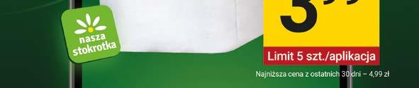 od 3,49 do 4,11 zł/100 g (przy zakupie 2 szt.) Przy zakupie 1 szt. – 4,49 zł (od 4,49 do 5,29 zł/100 g) 1199 EKSTRA CENY Herbata eksp. Lipton Yellow Label 92 t. x 2 g; 65,17 zł/kg Najniższa cena z ostatnich 30 dni – 11,99 zł 1299 EKSTRA CENY 21,99 349 kup 2 za 6,98 zł /szt. przy zakupie 2 szt. Pierś z kurczaka ze skórą 1 kg Olej Kujawski 3 l; 6,67 zł/l Najniższa cena z ostatnich 30 dni – 24,99 zł 1999 EKSTRA CENY Filety śledziowe solone a’la Matias Herring; 14,90 zł/kg 1,99 149 EKSTRA CENY /100 g 1899 z APLIKACJĄ 1999 bez aplikacji: 0,84 zł/rolka zł/rolka z aplikacją 0,80 8,99 399 EKSTRA CENY