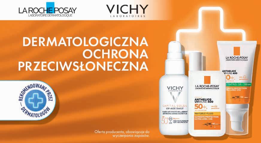 AKCJA DOTYCZY: 1. VICHY krem aksamitny, matujący, UV-Clear I 2. LA ROCHE-POSAY spray Pediatric, kremy Oil-Control