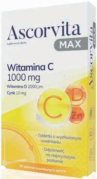 ASCORVITA MAX witamina C wspierana przez witaminę D oraz cynk, 30 tabl. cena za 1 tabl. – 0,60 zł