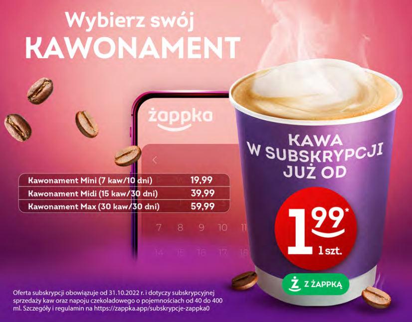 Żabka Polska Sp. z o.o. zastrzega sobie prawo do pomyłek i błędów w druku. Zdjęcia umieszczone w gazetce mogą odbiegać od produktów znajdujących się w sprzedaży. Ceny maksymalne. Każdy sklep ma prawo stosować własne ceny, nie wyższe niż ceny maksymalne. Wszystkie ceny wyrażone są w PLN i zawierają VAT. Niniejsza informacja handlowa obowiązuje w wybranych sklepach oraz w wybranych smakach i rodzajach. Lista sklepów, w których informacja handlowa nie obowiązuje, dostępna jest pod adresem: https://media.zabka.pl/uploads/media/64d1e9257063d/lista-sklepowsezonowych-08-08-23.pdf . Cena nie dotyczy bezobsługowych automatów sprzedażowych pod nazwą Żabka Nano. Mapa sklepów dostępna pod adresem: https://nano.zabka.pl/#map
