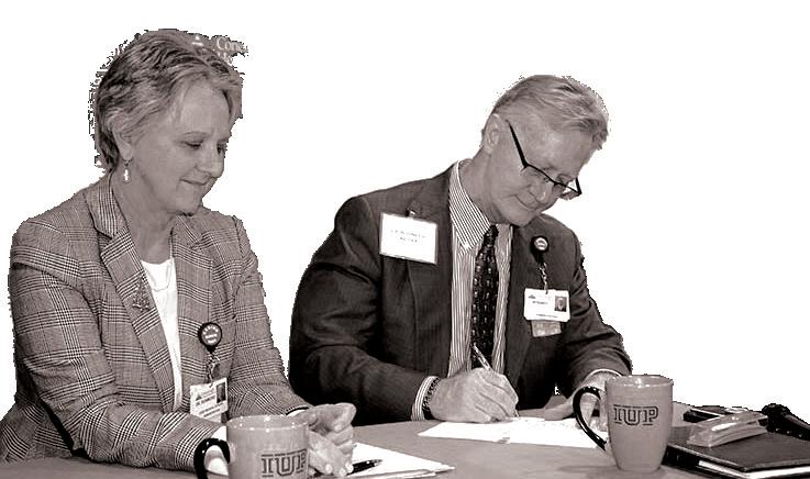 On Ju ne 25 , IUP and Punxsutawney Area Hospital signed a clinical training agreement for students in IUP’s proposed college of osteopathic medicine. It was the first agreement of this kind between IUP and a medical facility. This collaboration will offer students invaluable hands-on experience in a community-based setting and is a key step in the proposed college’s accreditation process.