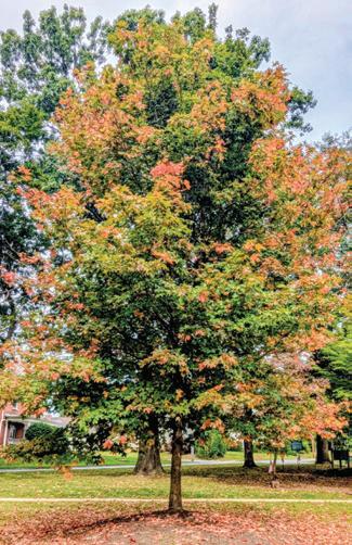 (right) The planted sugar maple tree in 2025 from Indiana’s Memorial Park.