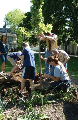 (left) Members of Club Scout Pack 29 in Indiana plant a sugar maple tree in Indiana’s Memorial Park in 2011.