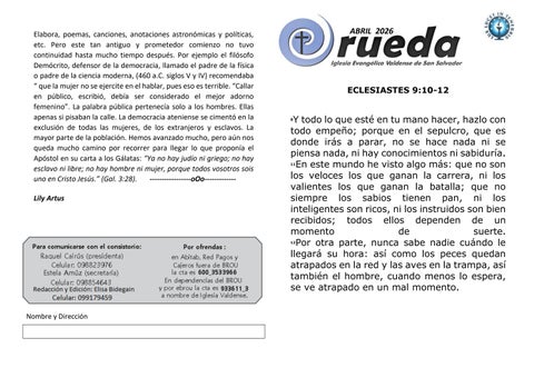 Boletín: «Sembrando Palabras de Vida» – edición abril 2026