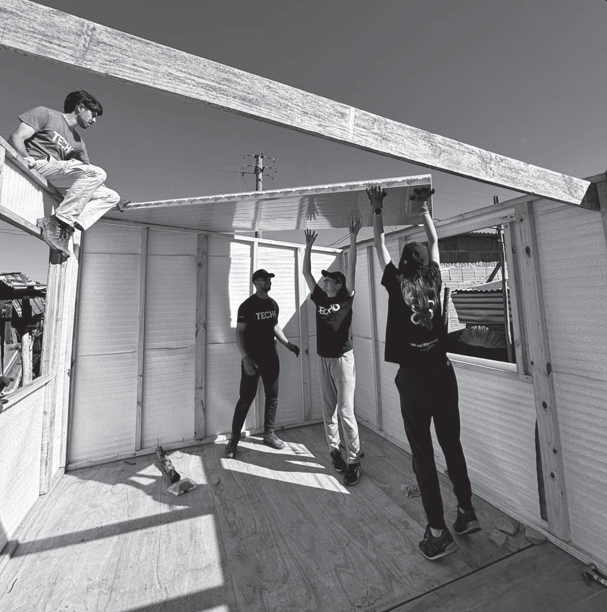 do les pregunté por los motivos para participar en esta acción. No citaron la carta de Santiago, “la fe sin obras es muerta”, pero a la vista está de que su contenido lo han recibido. En ese espíritu solidario participaron. “Nos impactó la realidad de esas familias en el encuentro cercano”, dijeron, “aprendimos a levantar una de esas casas”, “nos divertimos muchos”, “la situación de vida de familias, niños, particularmente es impactante”. “La sencillez de esa construcción es un cambio de vida”.