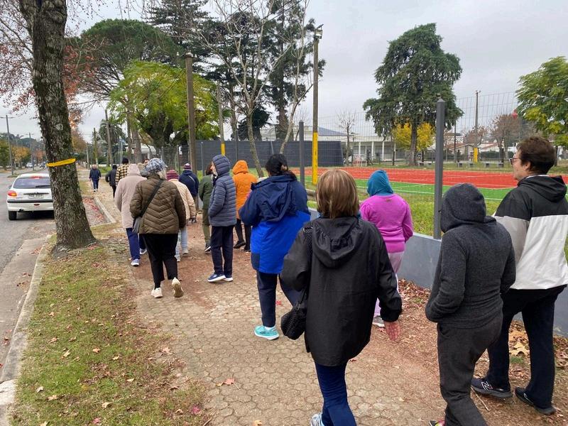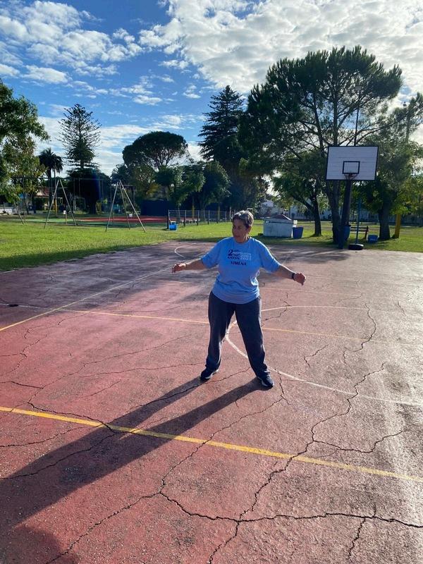 En la plaza caminamos, hacemos ejercicios físicos y nos conocemos un poco más entre todos