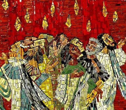 Viento fuerte y fuego, como en la montaña del Sinaí antes de que Moisés reciba las Tablas de la Ley (Éxodo 19), acompañan el don de lenguas (glosolalia) y el ser llenos/as del Espíritu Santo El Espíritu actúa con poder promoviendo el empoderamiento personal para el comienzo de la misión cristiana