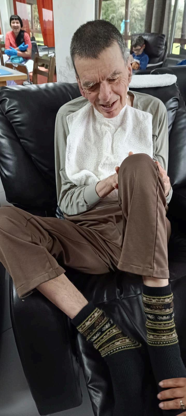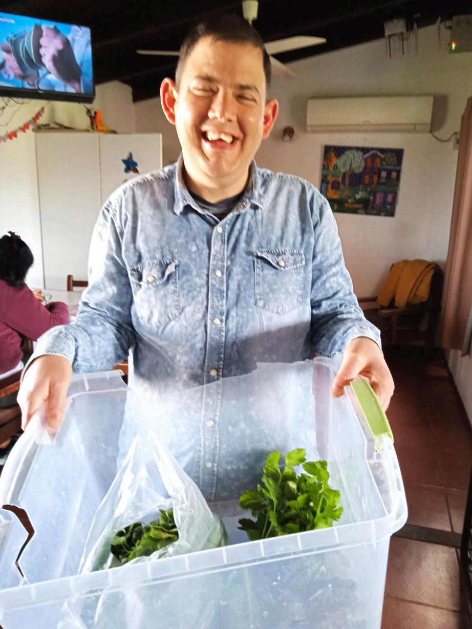 Lo más fácil: Arreglar un tomacorriente, cambiar una canilla o una bombilla ¿Por qué me gusta trabajar acá? No conocía el hogar, pero soy casi licenciado en psicología Cuando estaba en la facultad, siempre me gustaba trabajar en lugares donde pudiera ayudar a personas. Volví a Nueva Helvecia sin terminar la carrera, que luego continué pero no terminé Un día me dijeron que había un lugar donde se trabajaba con personas con discapacidad y me interesó, ya que tengo familia con discapacidad Me presenté y comencé como cuidador por varios años. Me gusta lo que hacemos, estar con ustedes, ayudarlos a que tengan una casa, ver cómo se apropian del lugar, que puedan tener un lugar propio Verlos bien me da mucha satisfacción Siento mucho el trabajo y el servicio que damos a ustedes, colaborando y ayudando Es lo que más me gusta y lo que transmito a mis compañeros de trabajo en el área de logística y mantenimiento Soy equinoterapeuta desde hace 10 años, trabajé 5 o 6 años en El Tornado, y cuando el hogar decidió hacer equinoterapia, empecé a realizarla aquí ¿Y el tío Mario? El tío Mario fue un funcionario de mantenimiento que trabajó y se jubiló hace como dos años, cuando entró Sergio Mario trabajó 25 años aquí, aunque tuvo un tiempo fuera y luego regresó ¿Y la parrillada? Empezó hace muchos años, cuando en los talleres hacían parrilla Al principio la hacía yo y luego se la pasé a Mario, que la hizo durante muchos años. Los sábados hacíamos parrilla: chorizo y pollo, y alguna vez asado. Anécdota graciosa: Hace mucho tiempo se rompió un caño grande y tuve que destaparlo Sin darme cuenta, agarré otro caño que era hueco por dentro Cuando empecé a destaparlo, toda la materia y el agua sucia se me volcaron encima. Quedé todo lleno, me tuve que bañar, pero al menos logré destapar el caño. Otra anécdota fue cuando estábamos terminando una reforma en la cocina, ya era el último día, y al usar el taladro pinchamos un caño, lo que inundó toda la cocina Tuvimos que llamar a un sanitario para que lo arreglara Una anécdota graciosa de Sergio: estaba arreglando en casita 1, empezó a picar y cortó los cables de la corriente. La casita quedó sin electricidad y tuvo que pedir ayuda a Hansel, que es electricista Hansel cambió los cables y, gracias a Dios, no pasó nada porque la llave saltó Finalmente, una anécdota de Hansel: en el lavadero hay muchas máquinas que él sabe arreglar, pero hay algunas donde hay que tener c o se retiran bien, se puede sacar un caño y se inunda todo Un día, Hansel estaba desarmando u aber de esa situación, sacó un caño e inundó todo el lavadero.