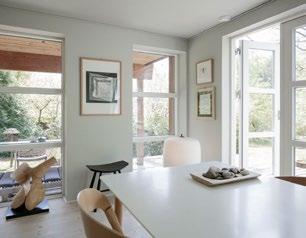 Familien på Øvrevænget 17 i Tisvilde Bakker har haft sommerhuset i 55 år. Det er fra 1930, men blev forlænget og udbygget til dobbelt størrelse i 1979 i samme arkitektur. Stort og harmonisk er det med alle sine 316 m 2 . Måske for stort til en enkelt familie, men her er 2 køkkener, ét i hver ende, og flere badeværelser, så det kan nemt og ligetil deles op til 2 familier. Den 10.018 m 2 store grund forputter sig bag de fredede sanddiger. Ja, og den marehalm, der i sin tid blev plantet på digerne, den er her endnu med lyng og fylder det meste af grunden. Tak for det, smukt er det at kigge på.