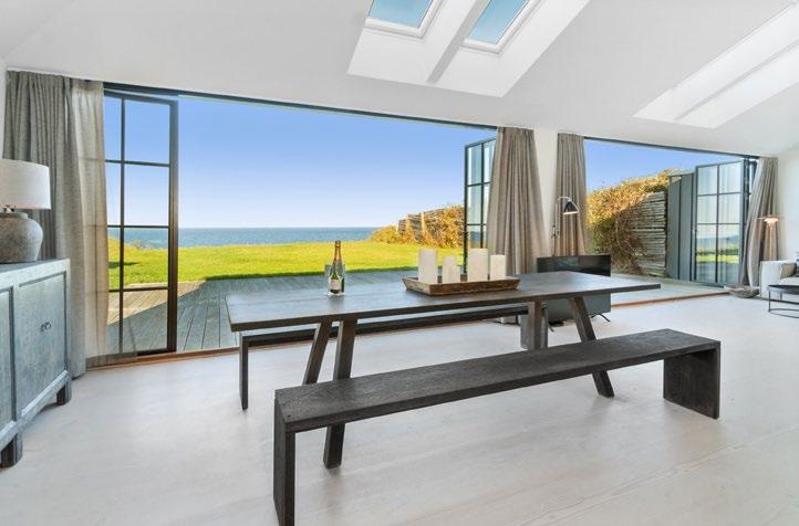 Global opvarmning. Verdenshavene stiger. Grøn omstilling. Overskrifterne er vigtige, men der skal søreme noget af en klimaforandring til, før vandet når op til sommerhuset på Kystvej 9B i Vejby, for det ligger små 35 meter over Kattegat, som vandet hedder heroppe på Nordkysten. Udsigten er mageløs, intet mindre, den er dyb og så stor, som armene kan brede sig. Og det har nuværende ejere kvitteret med terrassedøre, som åbner hele husets kystfacade, så himlen med alle dens engle, stjernestøv, solnedgange og månelys i kinddans med den maritime natur skyller ind i huset. Det er et drømmesommerhus i Drømmeland, hvor det eneste man skal gøre, er, at lade som om man er vågen.