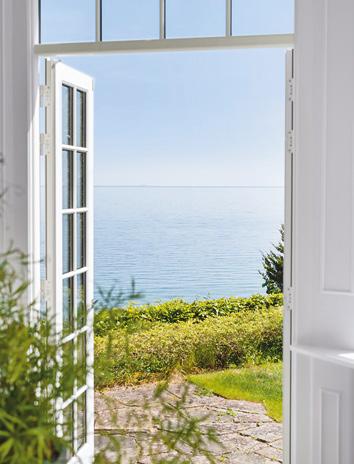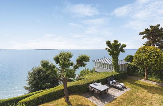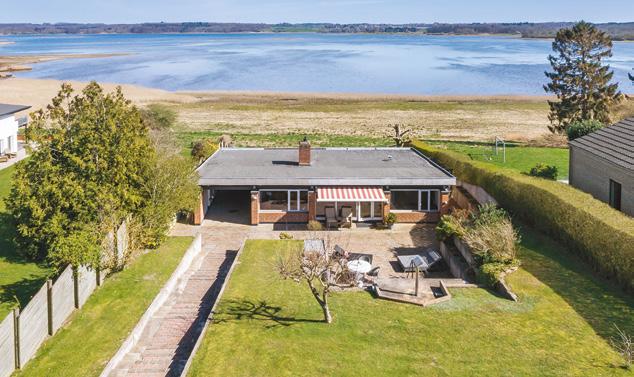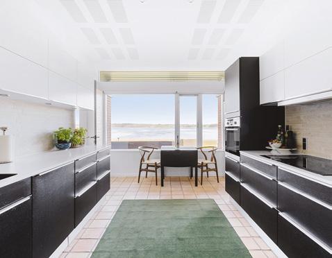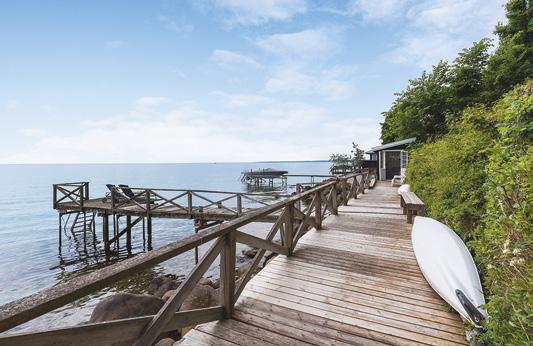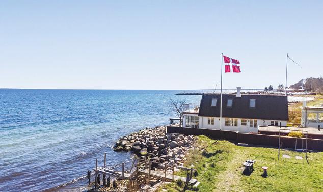 til terrassen så stuen bliver et med vandet og terrassen til de skønne sommeraftener. Så hvis man er på udkig efter et hus med en formidabel beliggenhed og havudsigt, ja, så bliver det ikke bedre end her. Når vind og vejr for alvor viser tænder, er der udvendige skodder til vinduerne, for så er der salt og vand i luften. Terrasser oppe og nede, mod øst og syd og vest, sol på maven hele dagen. En helt fantastisk og eksklusiv beliggenhed som skal opleves.