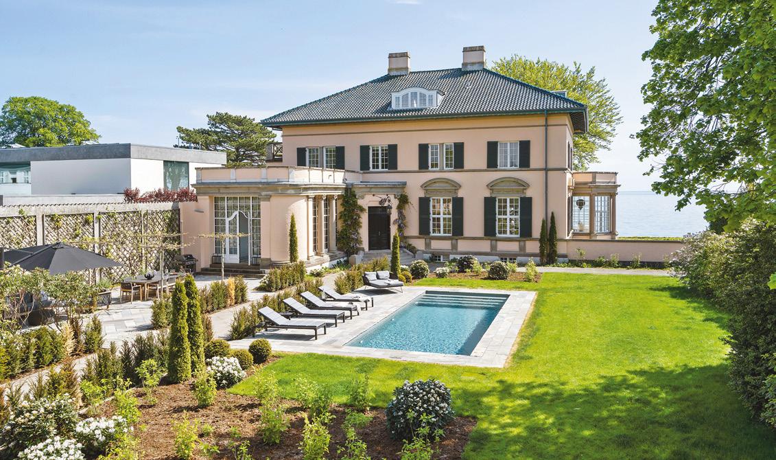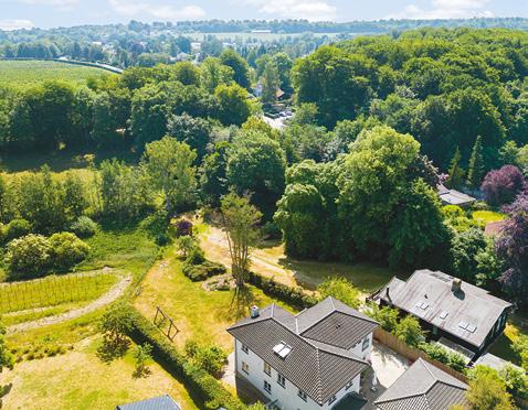 C. Fra den vildeste vinkælder til den øverste etage, fra den fineste barokhave, fra lejligheden i annekset og matriklens beliggenhed med 50 meter fredskov til Dyrehaven, ja, alt er renoveret. Med sin stramme symmetri, sin klassicistiske arkitektur, sit håndværk med træudskæringer, stukkatur og rosetter er ejendommen den smukkeste af alle de smukke private ejendomme i Gentofte Kommune. Og formentlig også i Danmark.