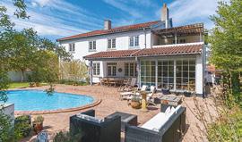 Huset på Tempelvej er bygget i 1966 og der blev lavet en tilbygning 11 år senere, men har siden da været igennem en foryngelses- og forandringsproces, så det i dag står som et tiptopmoderne hus med den grønneste energi på taget, pool, sø, garage på små 100 m2, en fritliggende udestue og et terrassemiljø, som enhver vestvendt terrasse må misunde. Bare lækkert. Med 235 m2 bolig og en grund på 5.775 m2 er her plads nok til familien med børn, ja, mange børn. Udsigten er mageløs fra stueetage og 1. sal til vandet i Tempelkrog, hvor Munk-