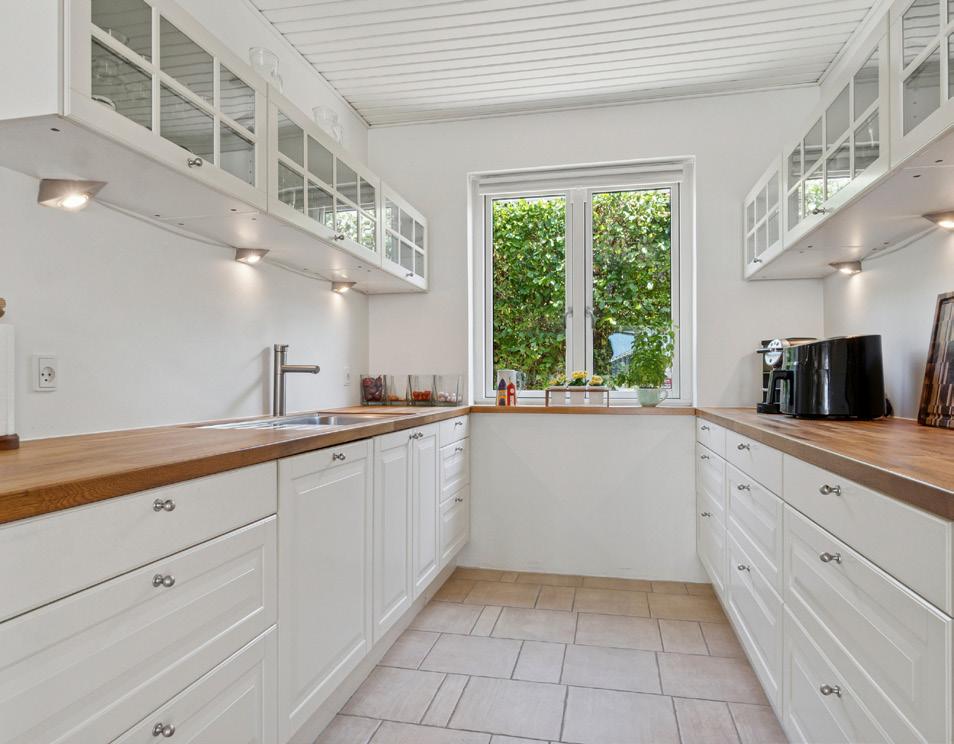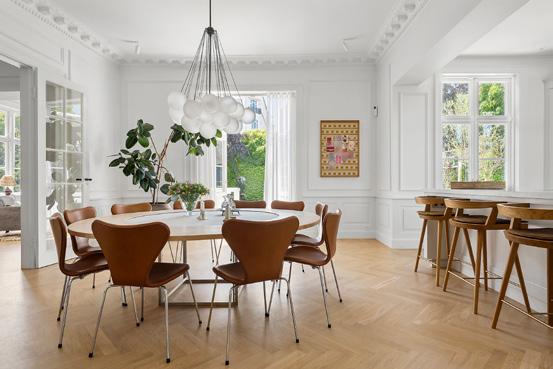 der oplyser hele kvarteret. Det fik nemlig en ny energi omkring 80 år senere, altså en genfødsel, da huset blev renoveret fra himmel til kælder. Kun de rå mure stod tilbage, da renoveringen gik i gang. Det er et fint hus med et smil, der oplyser hele kvarteret. Det står snorlige med et lækkert køkken, lækre badeværelser, Dinesen plankegulve og Vola armaturer. Her er ikke meget vedligeholdelse de næste mange år. Stort er det med 268 etagemeter, hvor de 56 m2 ligger i underetagen. Det bliver næppe mere ideelt til familien med børn.
