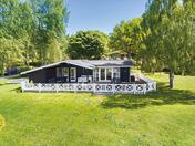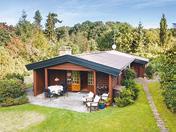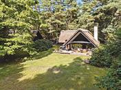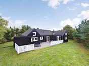 er bygget i 1976 på en blind sommerhusvej. Stort og pivhyggeligt er det med hvide skodder for vinduerne. Her er 188 m2 med masser af plads til familien med børn og venner på besøg. Grunden er på 2.036 m2 med en have, som kalder sig naturgrund. Mange tak, får man lyst til at sige, for det betyder meget lidt havearbejde. Morgenkaffe på terrassen, og sol på maven, når Solen går over i syd.