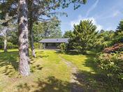 der ikke er sket de store forandringer siden da. Der er 6-7 meter til loftet i stuen med en sjælden fornemmelse af rum. Med 128 m2 og 3 soveværelser er her plads nok til familien med børn. Grunden er på næsten 1,5 hektar, som man siger. Her er 3 matrikler, hvor de 2 af dem er på knap 2.000 m2 hver. Der er bare 2 minutter gennem fredsskoven ned til stranden, som heroppe er Kattegat, hvor vandet altid er rent, altid i bevægelse, altid friskt. Det er et sommerhus med ånd og sjæl og et privat badehus i klitterne halvvejs til stranden.