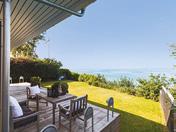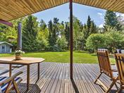 på døren hele året. Grunden er en stor naturgrund på 3.238 m2, indefra og på terrasserne er alt grønt med havudsigt, havudsigt og havudsigt i den 180 graders panoramaudsigt. Grunden er en stor naturgrund på 3.238 m2, indefra og på terrasserne er alt grønt med havudsigt, havudsigt og havudsigt i den 180 graders panoramaudsigt. Med vinduer fra gulv til loft mod vandet er det et meget lyst sommerhus hele dagen. Det er bygget og indrettet med lækre materialer.