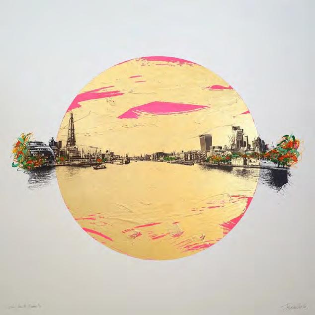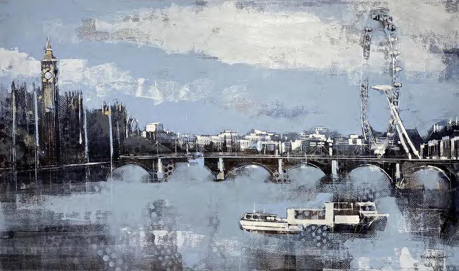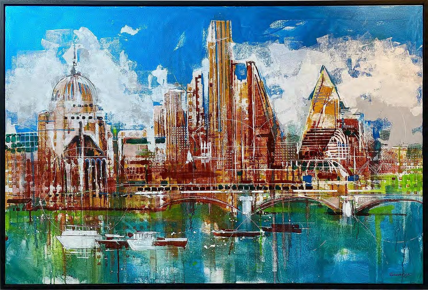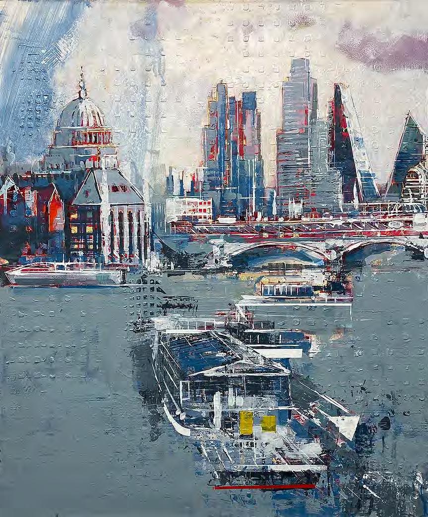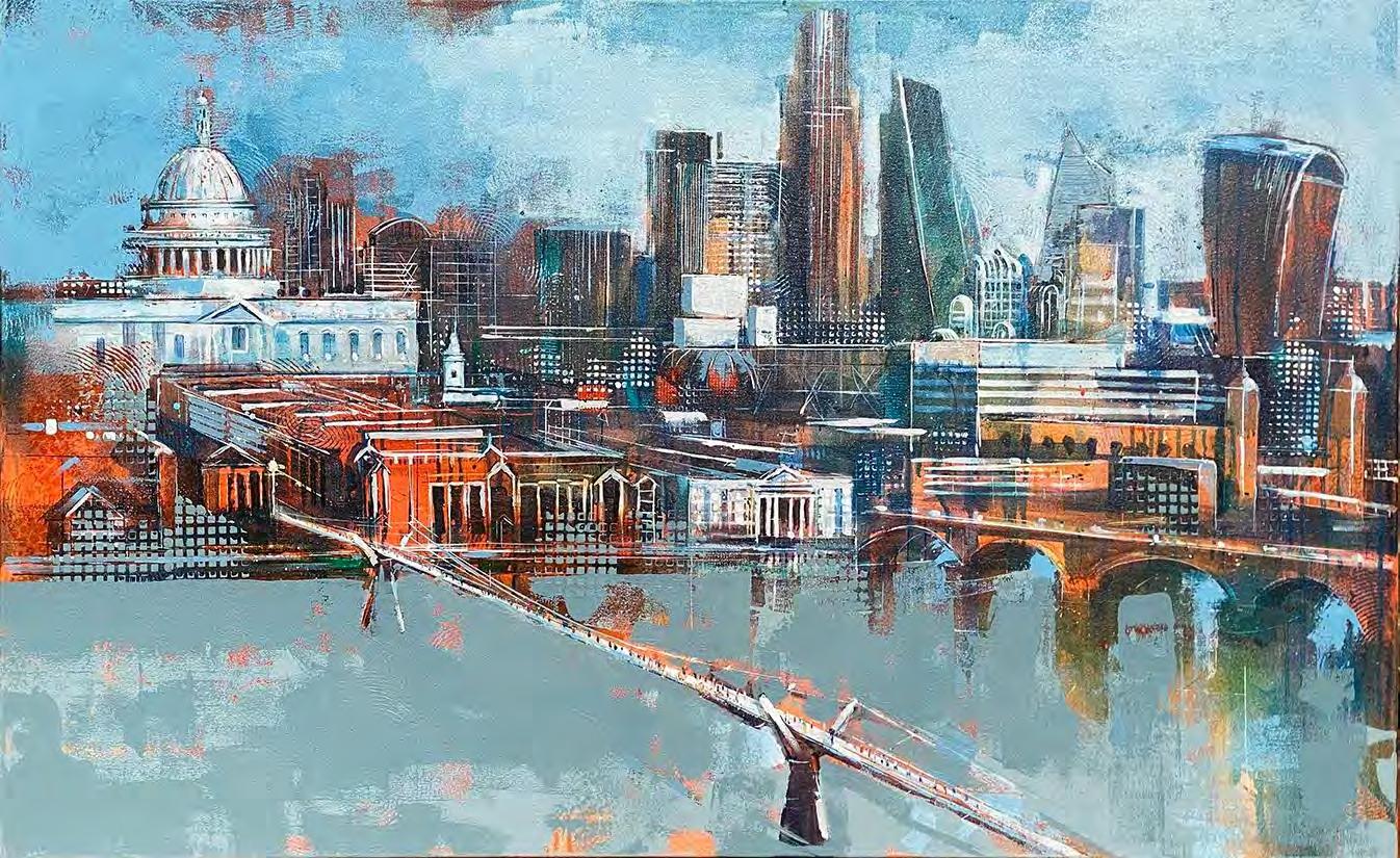 A float framed acrylic on board of the London City skyline