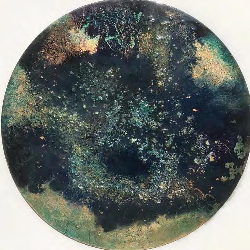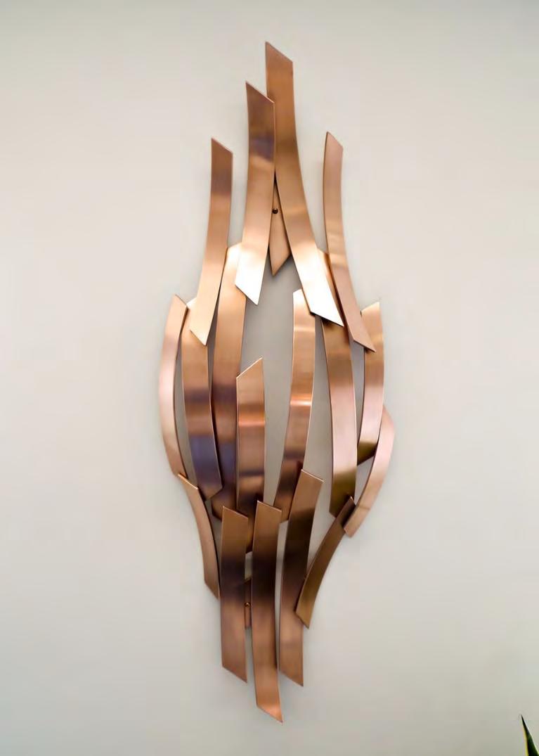 Copper with multi-coloured patina finish and polished
