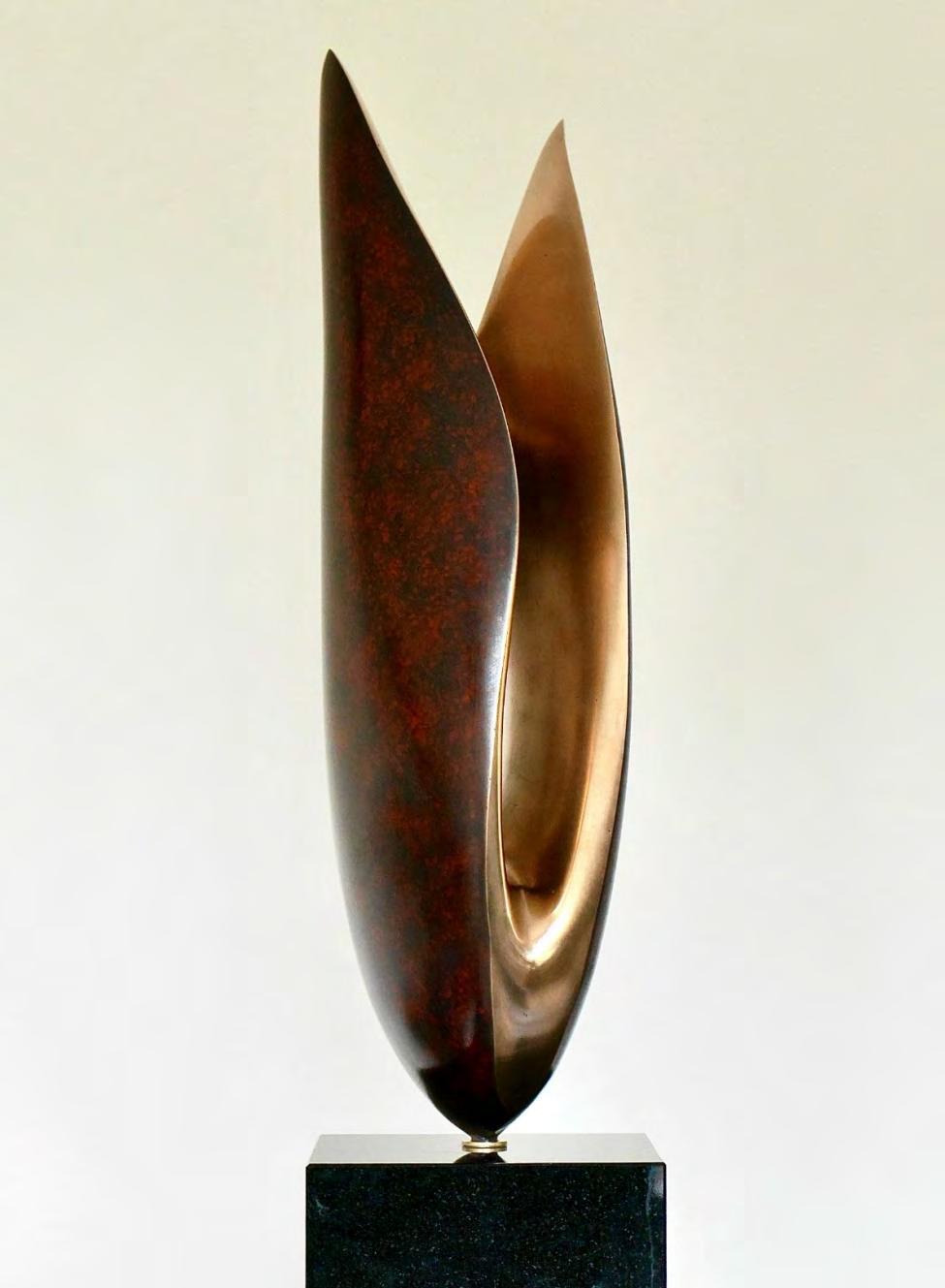 Cast bronze with patina and gold leaf, on limestone plinth