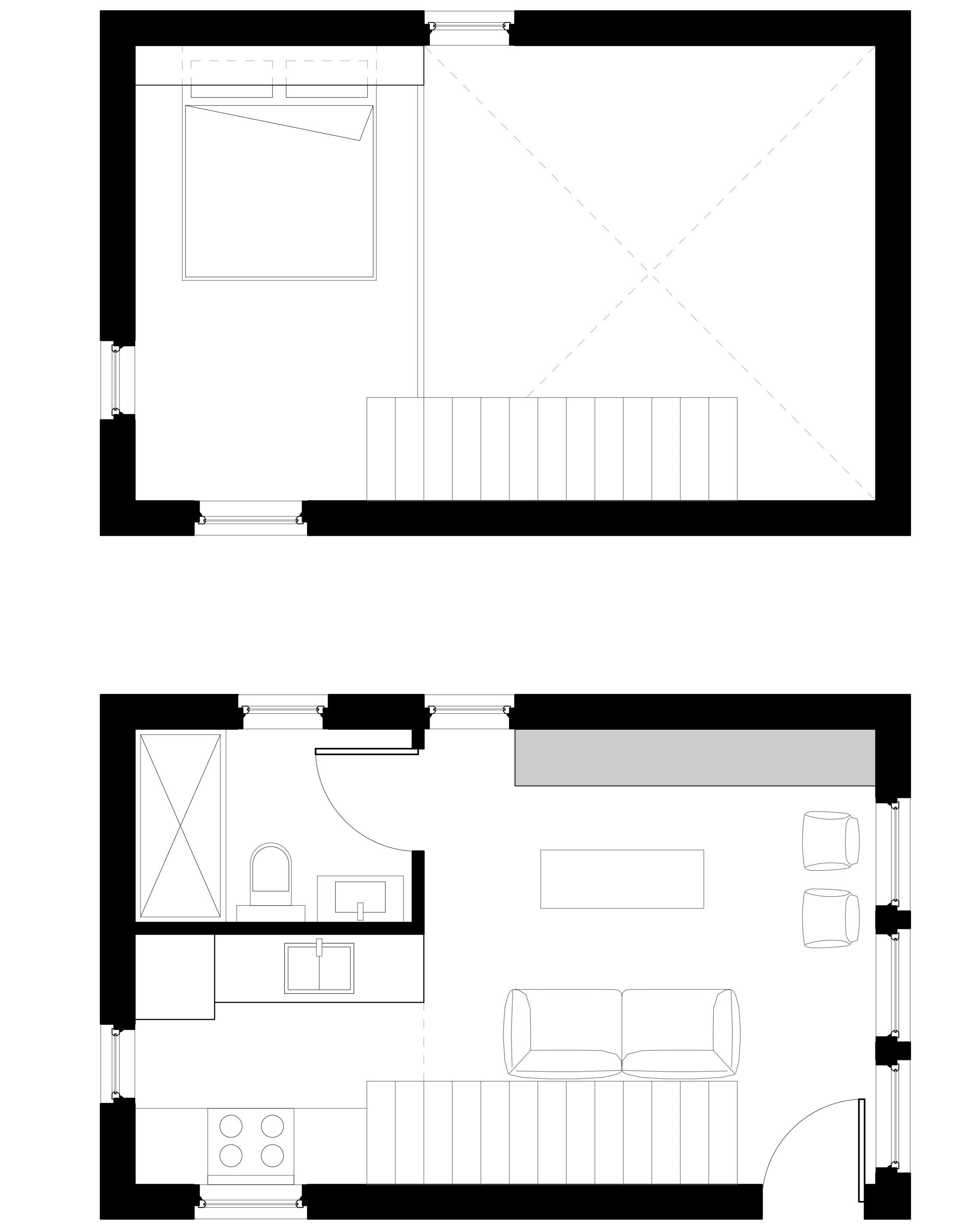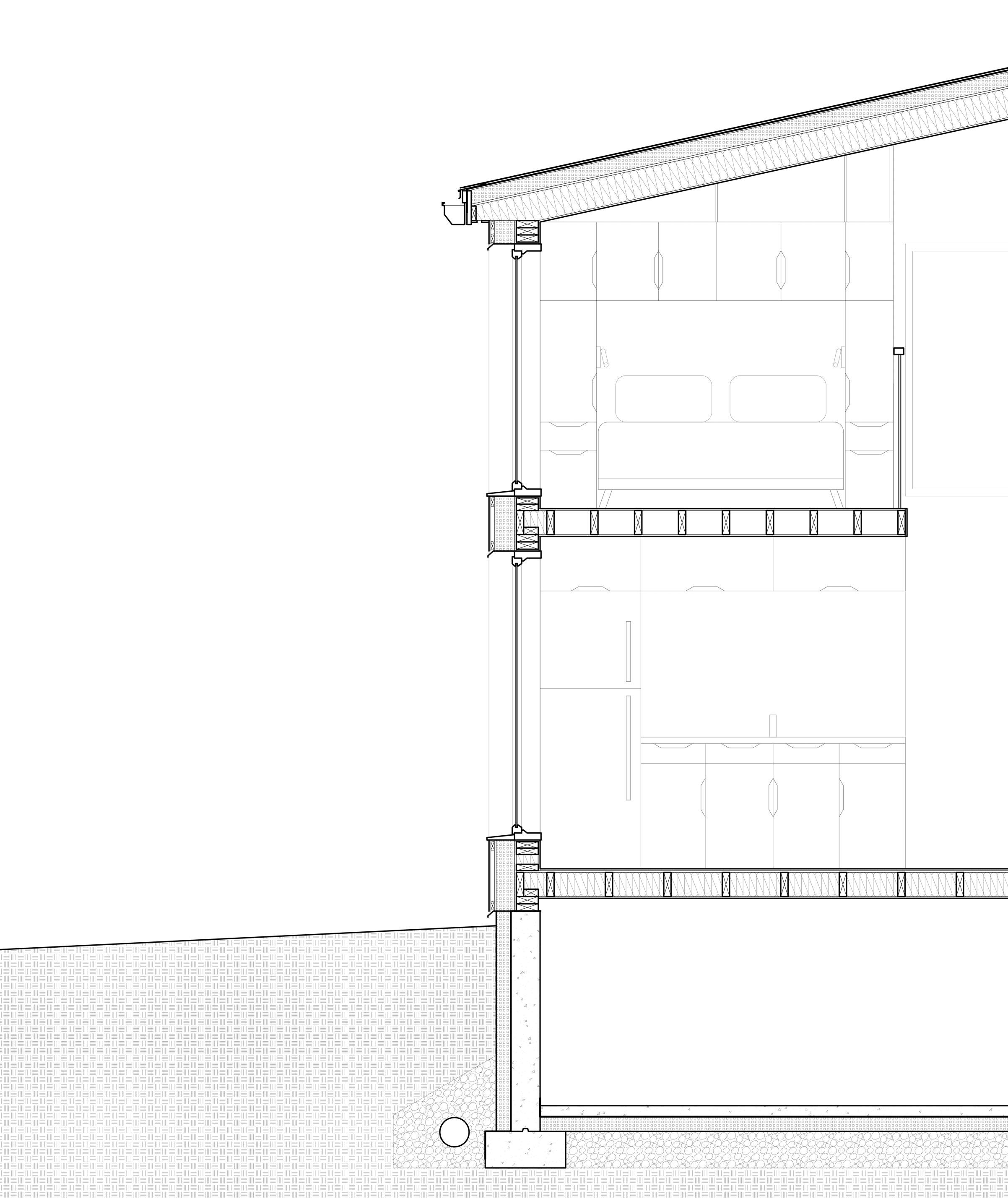 A modified saltbox roof is chosen, angled south to maximize energy captured by photovoltaic panels. The added interior volume opens the opportunity for a lofted space, minimizing the building’s footprint while opening the interior space. The open plan maximizes functionality, incorporating multi-use furniture and innovative storage solutions. The building uses locally sourced materials when possible, such as cedar siding and pine framing.
