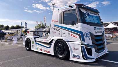 Stesse caratteristiche di modello e motorizzazione per il terzo IVECO S-Way del cliente Trailer Solution, seguito da Officine Brennero, un veicolo grigio vela che risalta le linee estetiche della gamma Way. Con luci di colore blu e arancio e la grande scritta “Nicola” sul tetto insieme agli altri trattori sullo stand ha presenziato anche il cabinato 3 assi 6x2 modello IVECO S-Way, modello AS260S57Y/PS con motorizzazione 570 cv del cliente Rinaldi Nicola, seguito dalla concessionaria Di Pinto L’IVECO eTruck, presente anche in questa edizione, ha attirato l’attenzione di molti partecipanti. Il veicolo è quipaggiato con un eAxle posteriore di FPT Industrial, che eroga 840 kW di potenza massima. Il sistema eTruck, con un picco di potenza di carica di 522 kW, consente di completare una distanza di gara completa (ad esempio le gare precedenti FIA ETRC). Inoltre, il veicolo è dotato di 4 batterie con un accumulo totale di energia di 252 kWh. All’evento, presente anche IVECO CERTIFIED PRE-OWNED, il nuovo Brand nato per commercializzare i veicoli pre-owned di IVECO, con i test drive di due IVECO S-Way, trattori 2 assi 4x2 modello AS440S48T/P dotati di motore diesel Cursor 11 da 480 cv. Sullo stand presenti un IVECO S-Way, trattore 4x2 modello AS440S51T/FP, dotato di motore Cursor 13 da 510 cv e un IVECO S-Way, modello AS440S48T/P, equipaggiato con motore Cursor 11 da 480 cv.