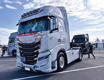 alimentabili ad HVO, trattore 4x2, un AS440S58T/P e un AS440S50T/P, dotati del nuovo XCursor 13, che consente fino al -10% di risparmio carburante, garantendo sistemi di sicurezza all’avanguardia, massimo comfort per l’autista. Inoltre, l’IVECO S-Way da 580 cv è equipaggiato con personalizzazioni che lo rendono unico, un mobile progettato per la cabina versione Active Space, un vano che aumenta e razionalizza lo spazio di stoccaggio interno. Inoltre, la mensola di supporto centrale, l’illuminazione interna dei vani, l’illuminazione maniglie effetto ambient sono disponibili come optional.