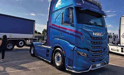 In aggiunta, come tradizione, sullo stand IVECO sono presenti i veicoli personalizzati dei clienti: di colore bianco con cromature sulla calandra e specchi e luci su tetto, l’IVECO S-Way del cliente Cirioni Arduino, seguito dalla concessionaria Adriacar, modello AS440S53T/P con motorizzazione 530 cv. Si è distinto per il colore blu lucido il veicolo del cliente Rizzi Luciano & C SNC, consegnato dalla concessionaria Officine Brennero, AS440S53T/FP da 530cv e sospensioni full pneumatiche.