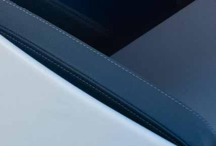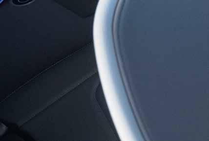 El color moca es el protagonista. La co jinería puede dar fe de ello. Su volante de borde grueso y la cabina responden a las necesidades modernas. Para com pletar la dicha del futuro comprador, los asientos deportivos incluyen un lo gotipo iluminado, reposacabezas inte grado y si lo desea, ventilación.