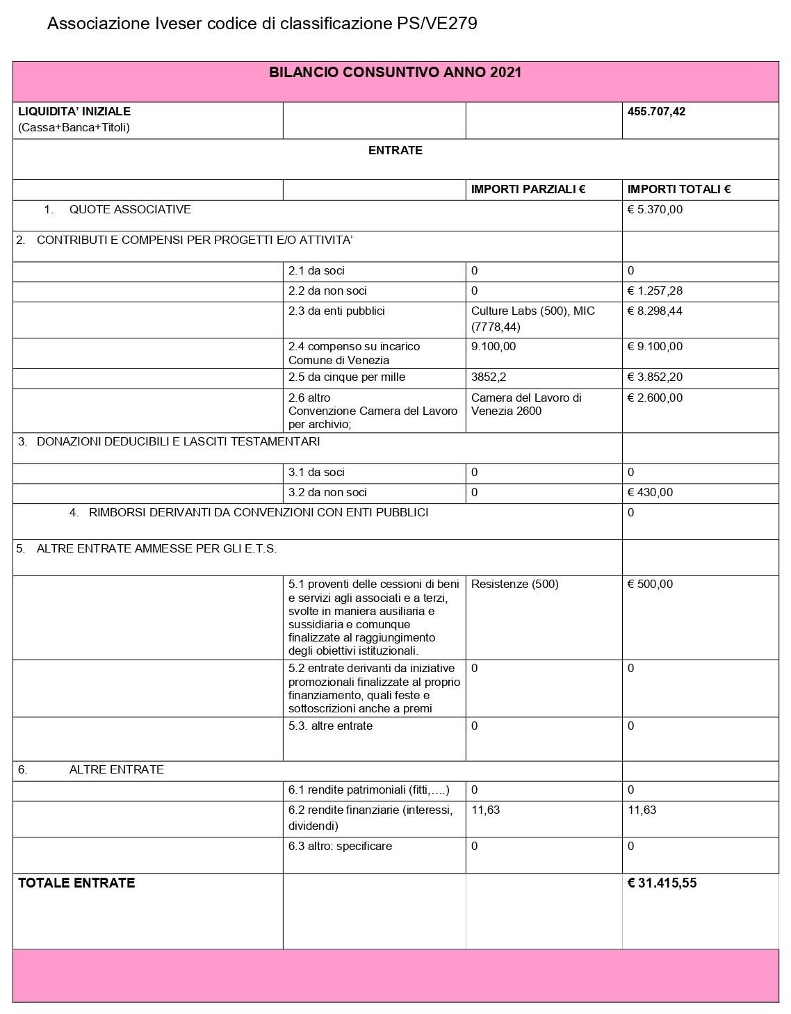 veneziano per la storia della Resistenza e della società contemporanea - Iveser Bilancio