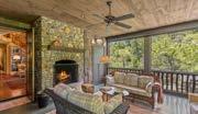 Stunning creekside retreat nestled along the rushing waters of Big Creek. Thoughtfully designed, this home features a spacious great room with soaring ceilings, a stone fireplace, and abundant natural light. Designer touches include shiplap walls, hardwood floors, built-ins, and custom furnishings. Enjoy serene views from the screened porch with fireplace, open deck, and riverside terraces. Highlights include wooded trails, garden areas, and a stone path to the river and waterfall.