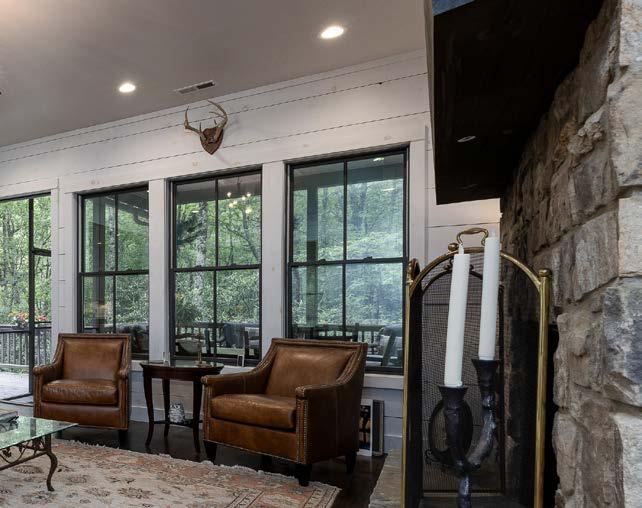 Discover effortless mountain living in this beautifully furnished three-bedroom, two-and-a-halfbathroom home on 2.45 lush acres in the sought-after Bald Rock community of Sapphire, NC. With an open, single-level layout and 10’ ceilings, the home is filled with natural light and charm, from the white wood lap walls to the impressive stone fireplaces inside and on the screened porch. All Bald Rock, the Divide and Sapphire Valley Master Association amenities included.