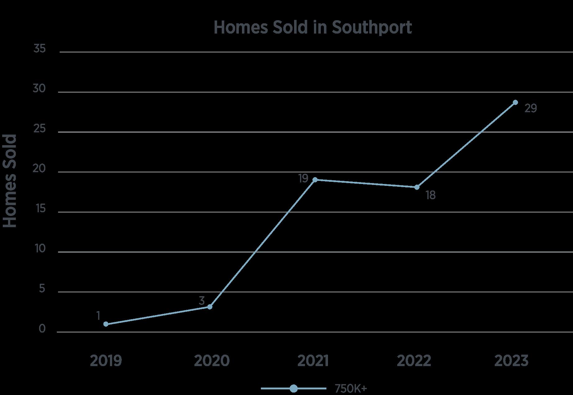 Southport is a small, historic town at the Southeastern tip of mainland North Carolina and is bordered by the mouth of the Cape Fear River and the Intracoastal Waterway. Mainly used as a military town from the 1700s, Southport has only become a sanctuary from city life in the last century. In 2019, there was only 1 house sold above $750K and by 2021, that number had multiplied to 19 homes, even jumping up to 29 in 2023.