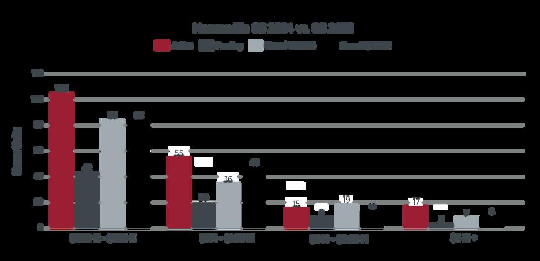 Davidson's luxury market continues to emerge as one of the region's most active segments, with 43 homes trading over $1 million in value in the third quarter, vs 30 in last year ' s same quarter, a whopping 43% increase. The sweet spot between $1 million and $2 million saw significant sell-through in the quarter and entered the fourth quarter with another 28 homes under pending contracts. Activity has continued to spread above the $2 million mark, while new construction offerings in the area have begun to line up to meet the upward trend in luxury demand in this preferred lifestyle choice destination.