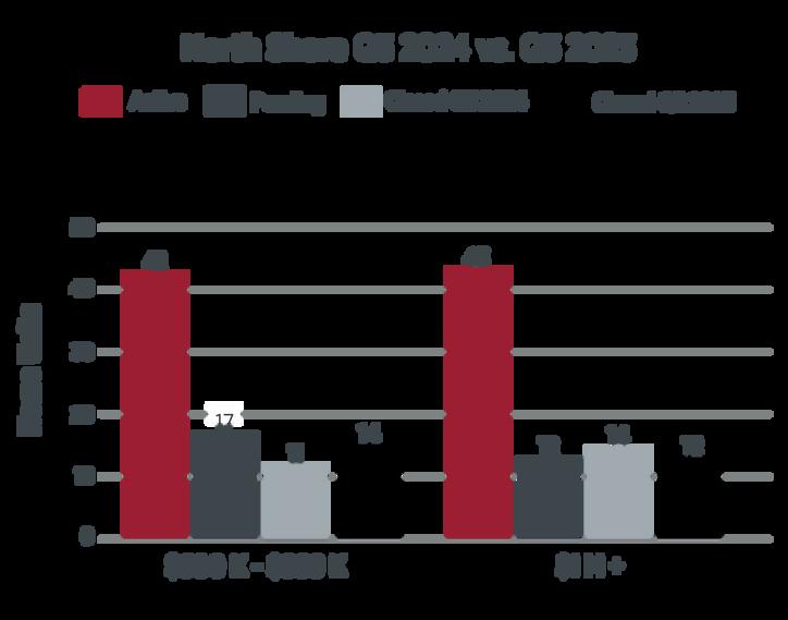 The quarter ended with another 12 homes pending, while 43 were active on the market. This area continues to see solid activity, albeit with more balanced conditions relative to inventory ratios and pending contracts.