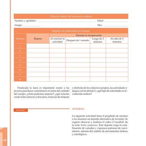 Ficha de control: Mi frecuencia cardiaca Nombre y apellidos: